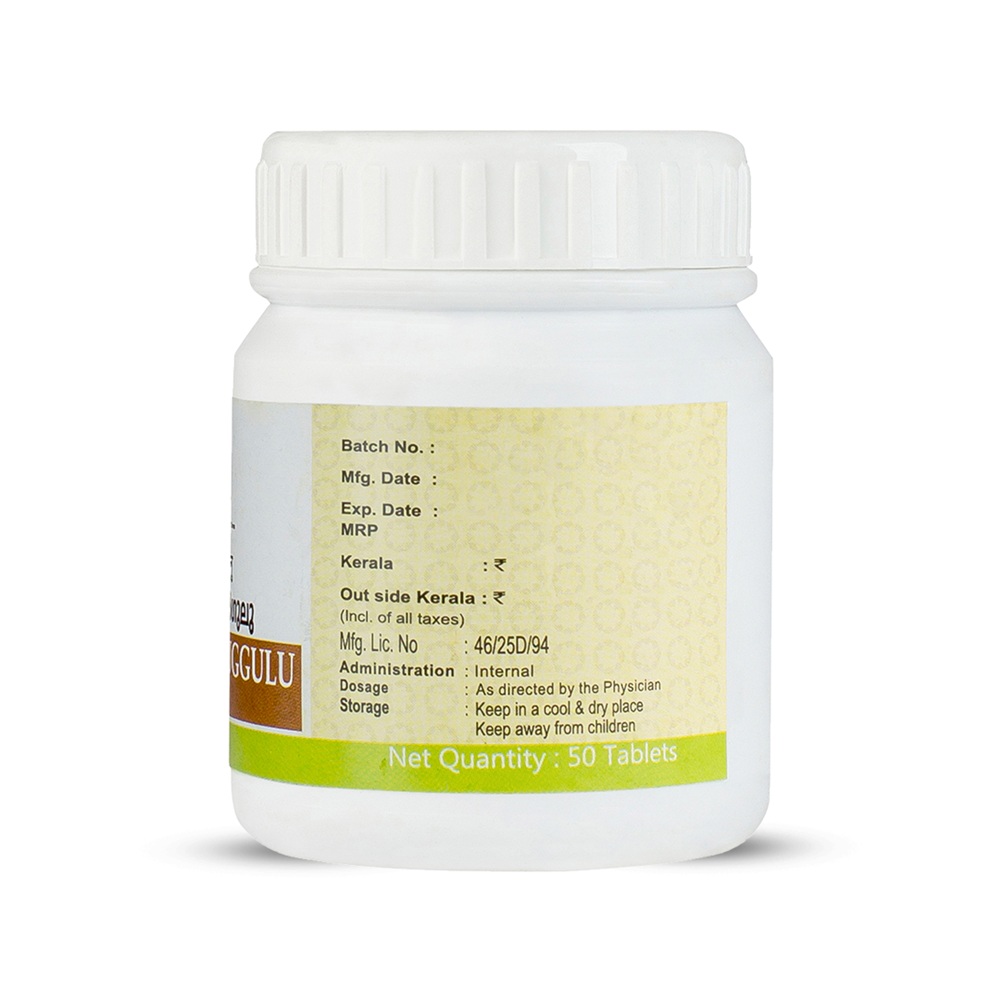 Kerala Ayurveda Yogaraja Guggulu: 50 tabManufacturer : Kerala AyurvedaQuantity: 50 tabNote: Product images are for illustrative purposes only. Images/packaging/ labels may vary from time to time due to changes made by the manufacturer's manufacturing batch and location. The product description is for information purposes only and may contain additional ingredients.Legal Disclaimer: Statements rega