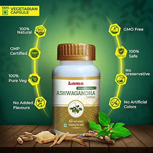 Lama Ashwagandha Capsule is an Ayurvedic Immunity Booster supplement made from pure natural extracts of Ashwagandha to help keep your body and mind active despite the hectic daily schedule. Regular consumption of this immunity booster capsules helps to restore your energy manages your stress and to increase immunity.