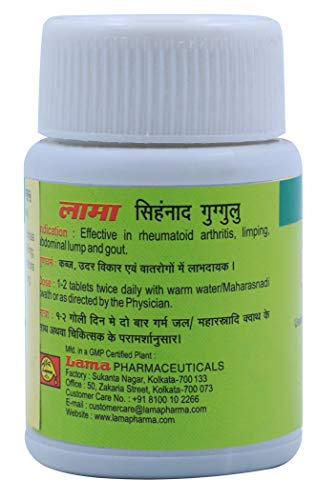 It helps remove natural toxins from the joints blood and gastrointestinal tract. It gives nourishment and strengthens the joint tissue gout and supports their proper function. Singhnad Guggulu helps promote healthy digestion and helps balancing overall system of human body.