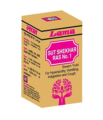 Lama Sutsekhar Ras with Gold helps reduces Pitta dosha and helps reduce symptoms like heartburn nausea vomiting abdominal pain hiccup fever breathing troubles and headache.