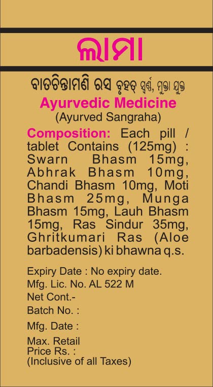 Lama Vatchintamani Ras is useful for Vata Dosha imbalance disorders such as Paralysis facial palsy. It is an excellent rejuvenative and anti-aging Ayurvedic formulation.