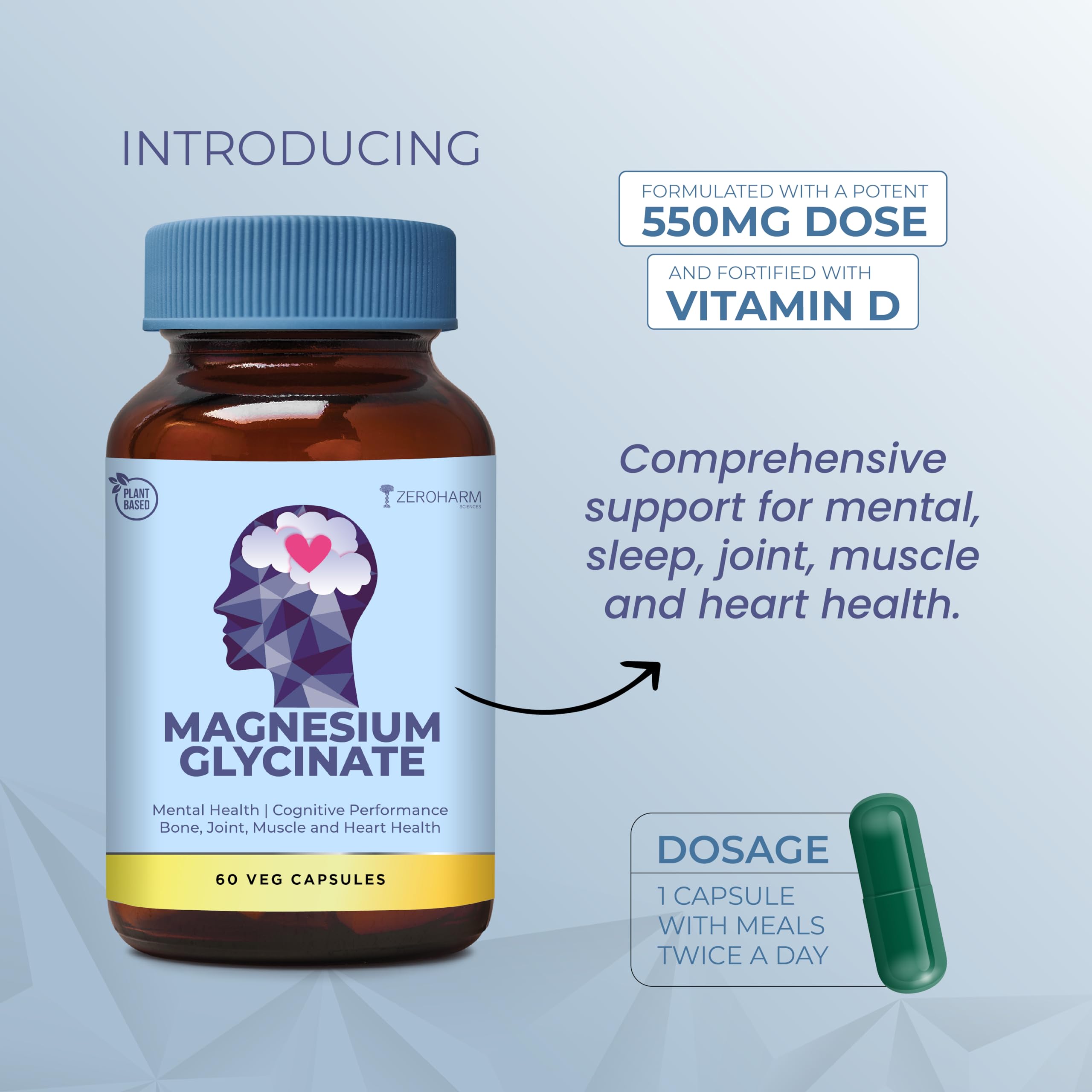 HomeHealth & PersonalDiet & NutritionHealth SupplementsMagnesium Glycinate 1100mg with Moringa Extract - For Stress Sleep Muscle Relaxation Bone & Heart Health - High Absorption - Plant-Based Supplement for Men & Women - 60 Veg Capsules - By ZEROHARM