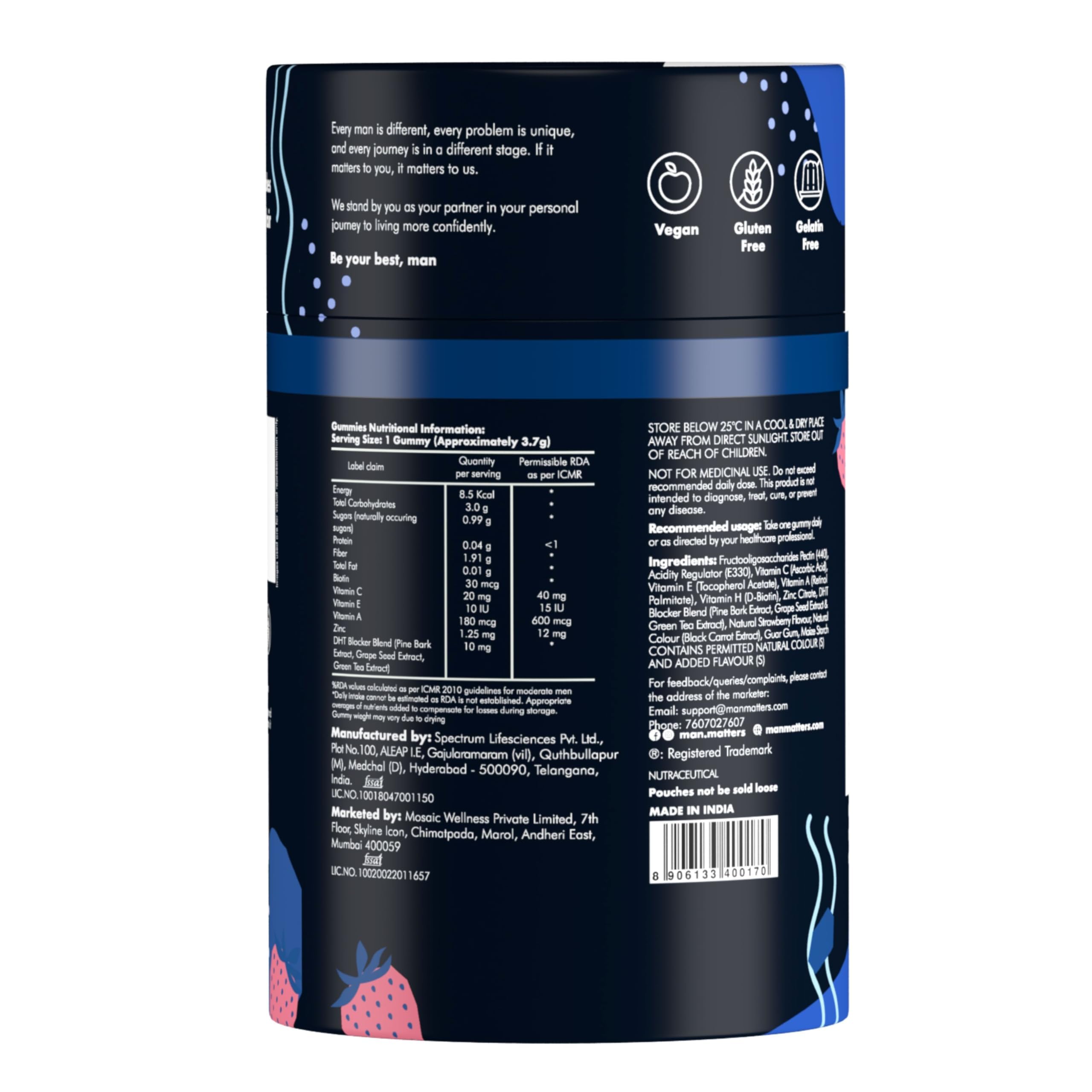 HomeHealth & PersonalDiet & NutritionHealth SupplementsMan Matters Biotin Hair Gummies (60N) | No Added Sugar | With Biotin DHT Blockers Vitamin A C E Fibre & Zinc | For Stronger and Healthier Hair | 100% Vegan & Gut Friendly