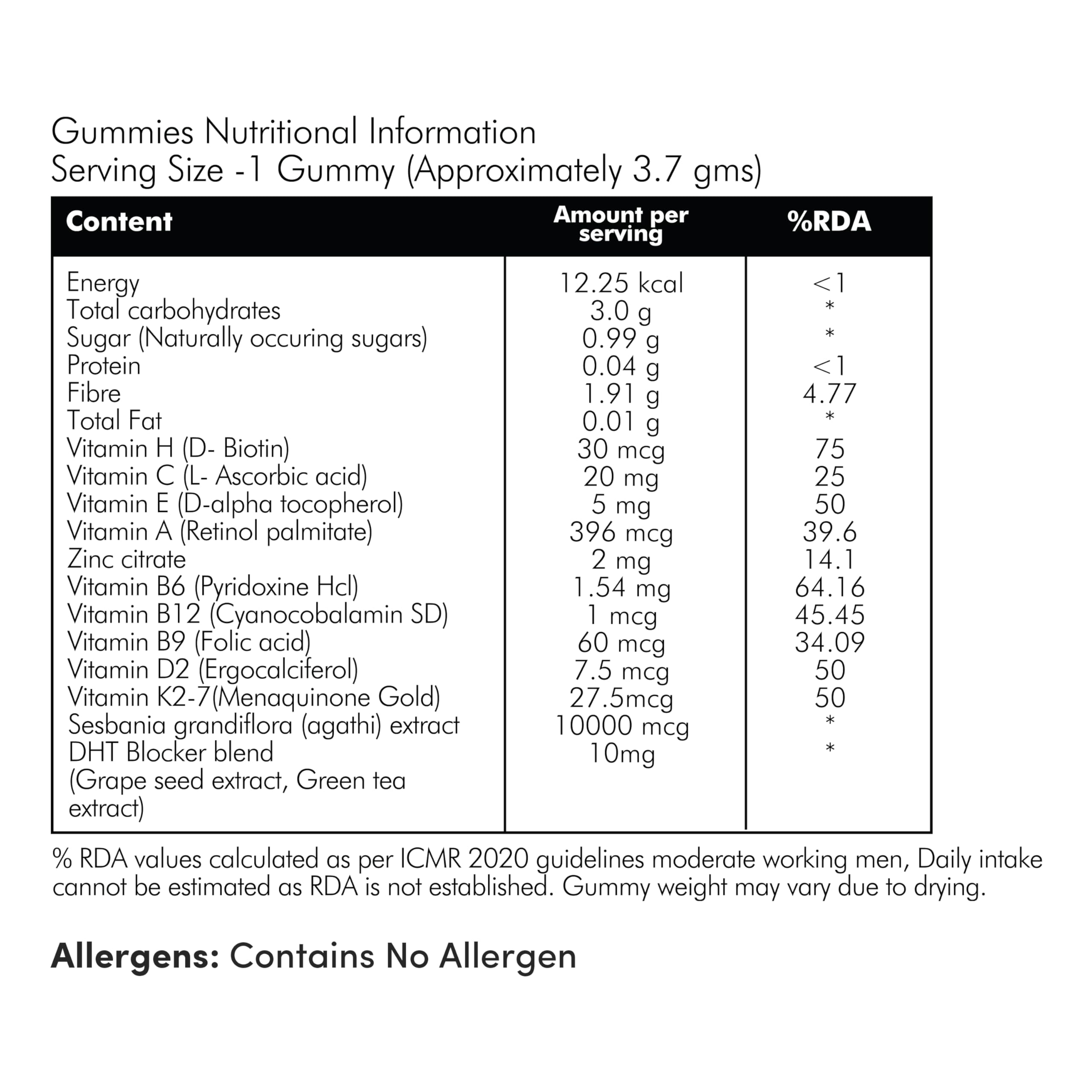 BIOTIN: These biotin gummies have easily absorbable biotin that is rich in fatty acids & antioxidants that gives your hair the right nutrition resulting in improved visible hair health