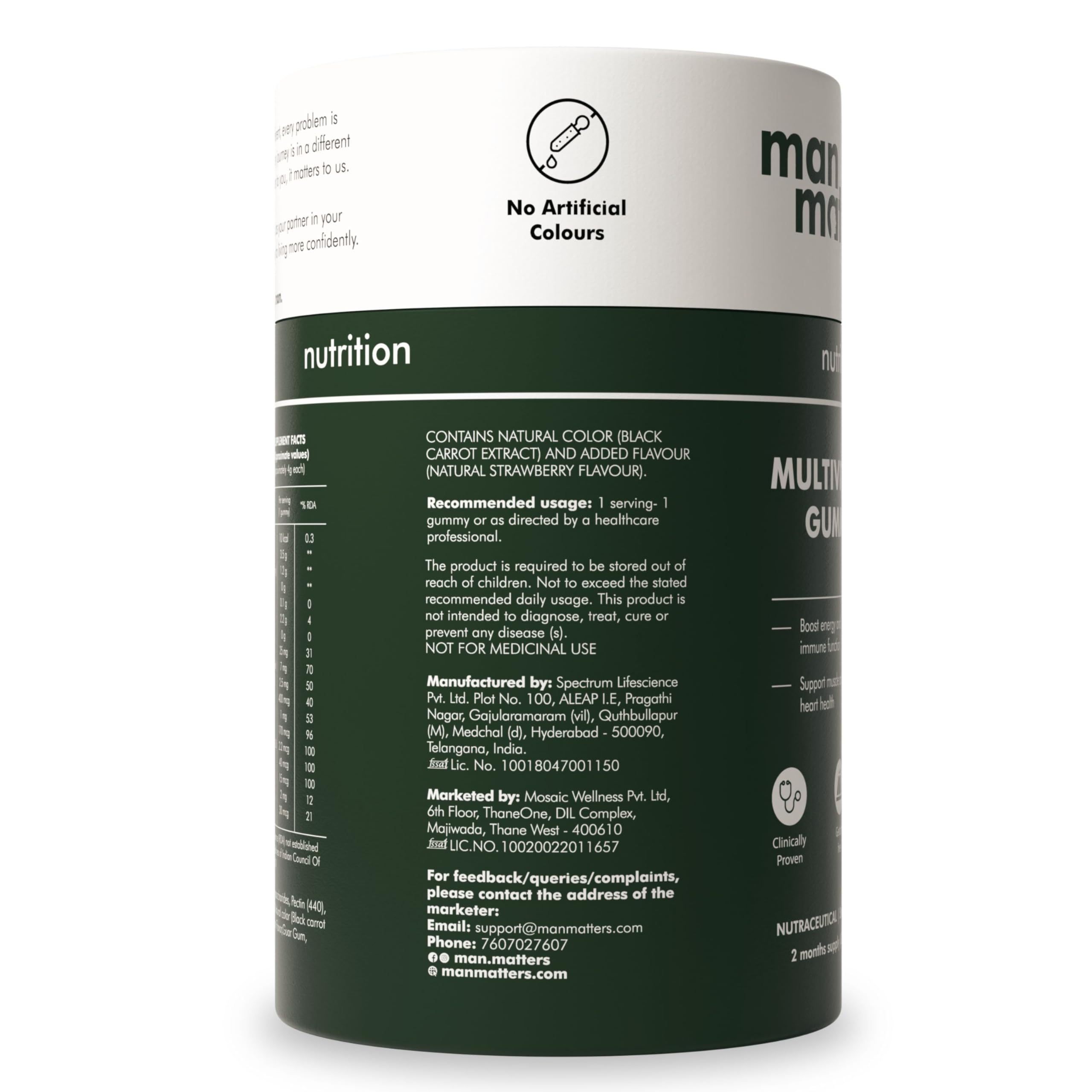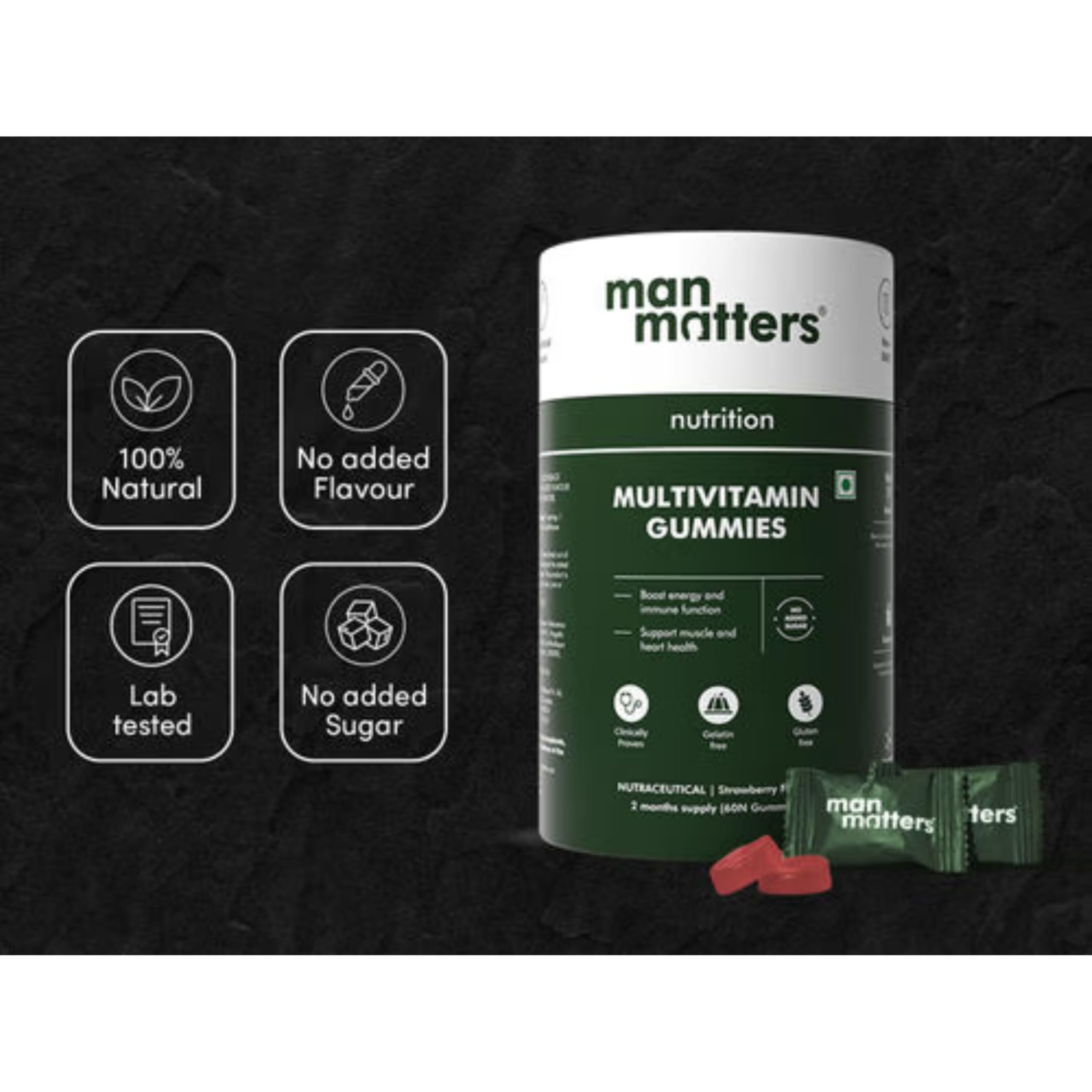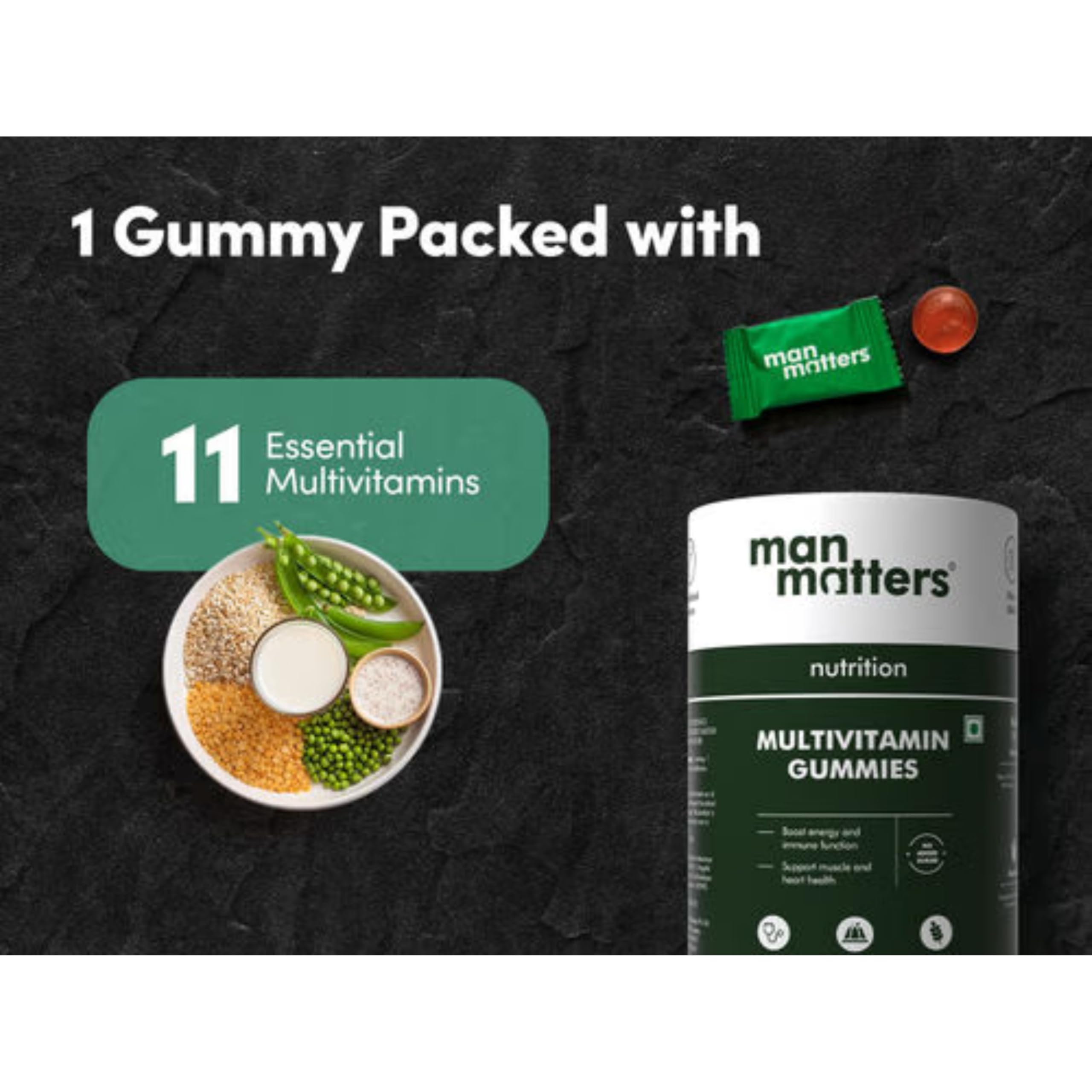 Man Matters Multivitamin Gummies With No Added Sugar | Daily Essential Multivitamin for Men | 15 Vitamins & Minerals 8 Amino Acids 7 Herbal Extract | Enhances Immunity & Overall Well Being | 60N
