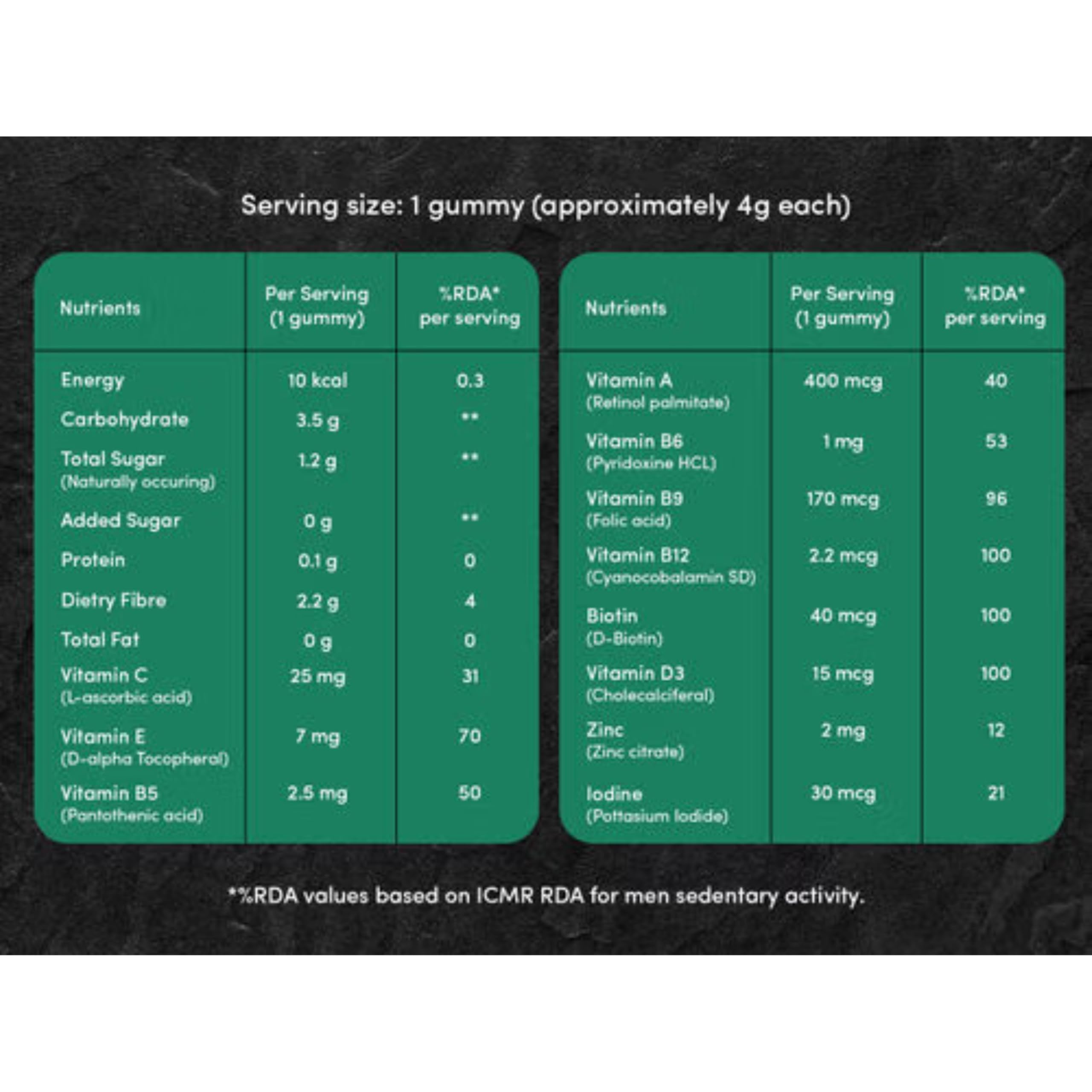 4] IMPROVES ENERGY LEVELS - Vitamin deficiency leads to a dip in the body's ability to sustain energy levels - leading to fatigue and tiredness. These gummies contain Folate Vitamin B12 and Vitamin B5 which improves metabolism and helps the body maintain