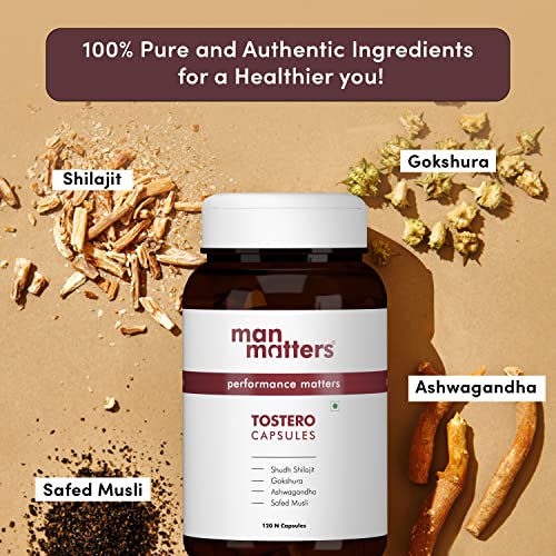 Man Matters Pure Himalayan Shilajit Gokshura Ashwagandha Safed Musli & Kesar Capsules for Men | Pack of 120 Capsules