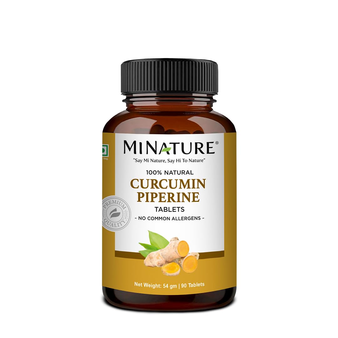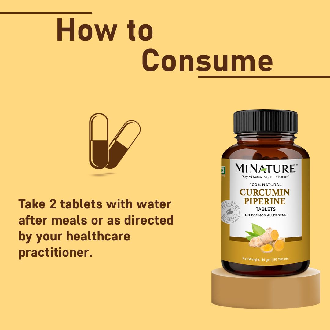 mi nature Curcumin Peperine Tablet | 95% Curcuminoids Extract with Peperine Extract | Acts Immune Booster |90 Tablet 54Gram 500mg
