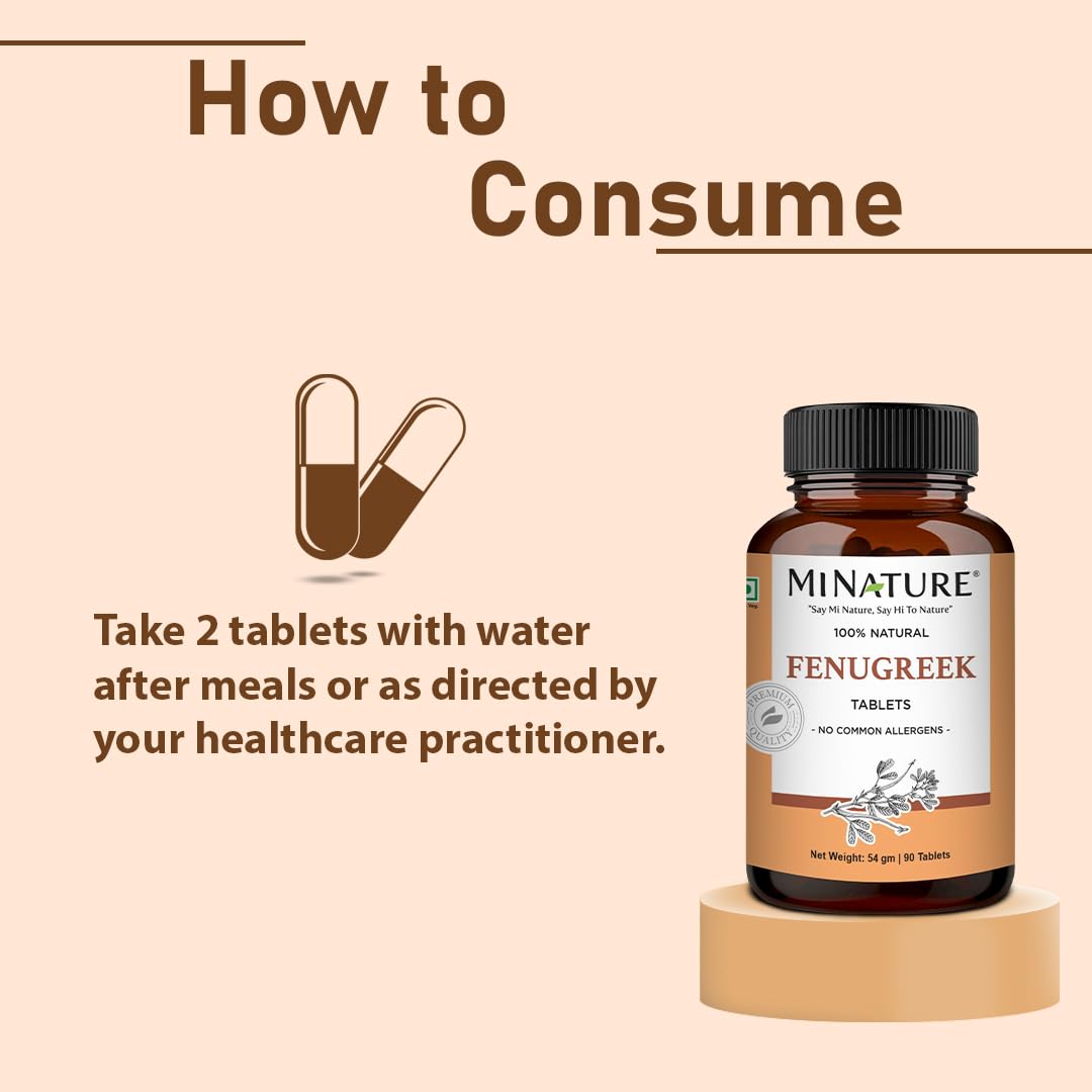 mi nature Fenugreek seed Tablets (methi Dana powder Tablets) | For immunity and Digestion| NON-GMO |Plant Based | 90 Tablets 45 Day supply