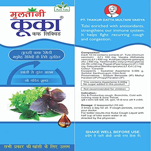 Multani Kuka Cough Liquid Sugar Free | Natural & Ayurvedic Syrup Drink | Relief from All Types of Cough & Cold | Relief Against Cough & Cold 100 Ml- 2 Pack