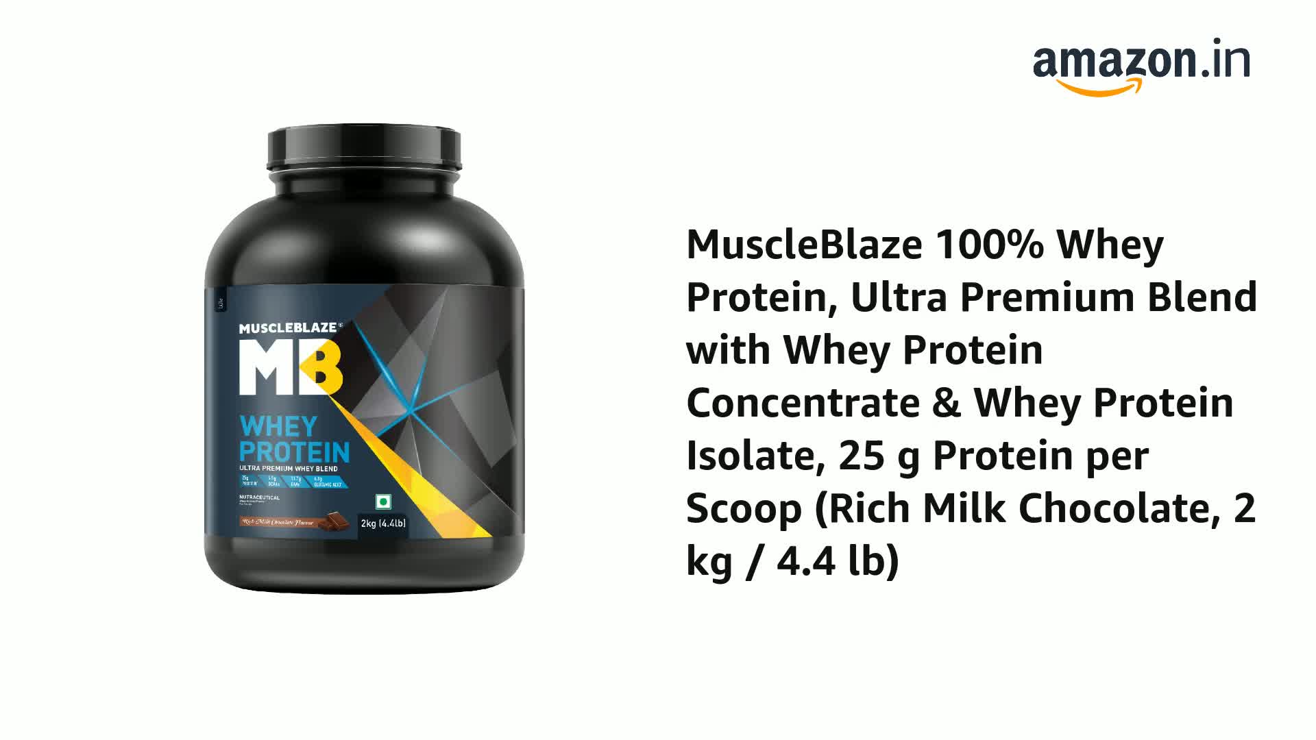 MuscleBlaze 100% Whey Protein, Ultra Premium Blend with Whey Protein Concentrate & Whey Protein Isolate, 25 g Protein per Scoop (Rich Milk Chocolate, 2 kg / 4.4 lb)