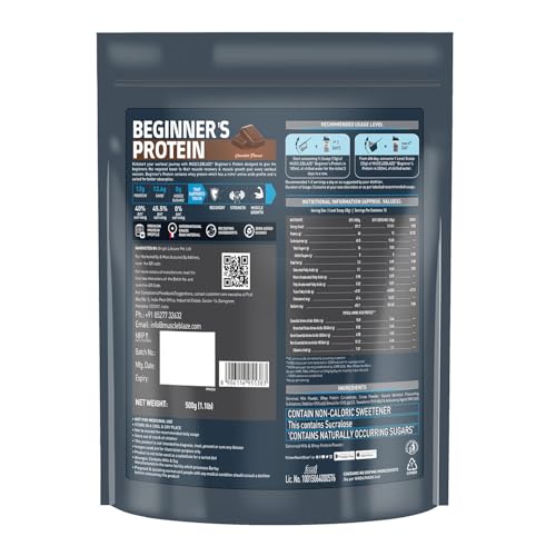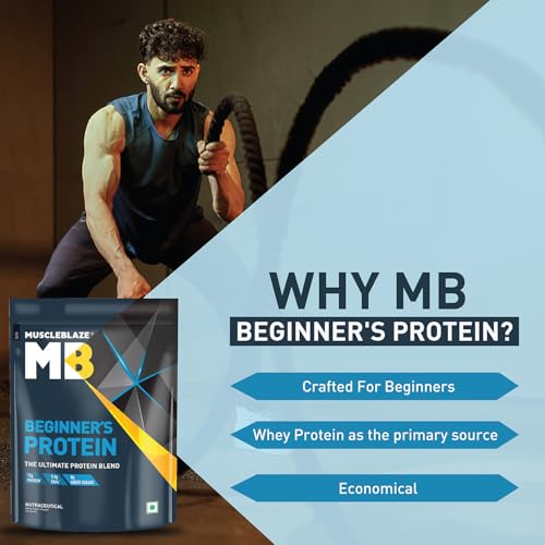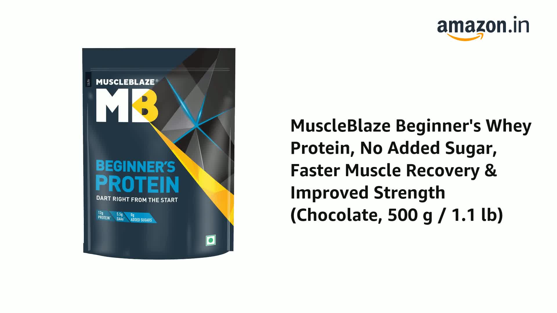 MuscleBlaze Beginner's Whey Protein, No Added Sugar, Faster Muscle Recovery & Improved Strength (Chocolate, 500 g / 1.1 lb)