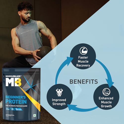 • REFRESHING FLAVOURS: Fulfil your protein intake with MuscleBlaze Beginner’s Whey Protein for muscle growth and post-workout recovery in scrumptious flavours like chocolate cookies and cream magical mango bubblegum and blueberry. Taste with the goodness