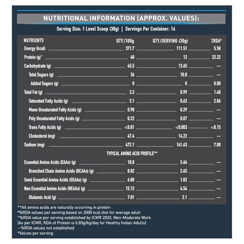 • 12 g PROTEIN: Kickstart your workout journey with a premium international grade whey protein designed to give extra energy recovery and added muscle definition. Each serving offers an optimum dose of 12 g protein and 5.5 g EAAs. Whey protein is the primar
