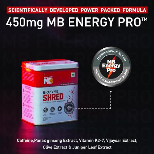 • THE METABOLISM IGNITOR: When metabolism slacks off it paves the way for unwanted weight gain. With MuscleBlaze Biozyme Shred you can unlock the power of your metabolism and ignite your weight management journey. Its Red Thermobolic Tablet offers powerful