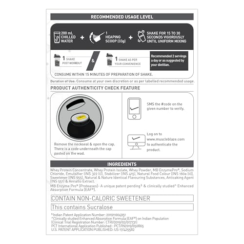 • INFORMED CHOICE UK LABDOOR USA & TRUSTIFIED- TESTED & CERTIFIED: MuscleBlaze Biozyme Whey Protein has been regularly & rigorously tested certified by Informed Choice Program U.K. Labdoor USA Trustified for Accuracy of label Claims (Protein content no amin