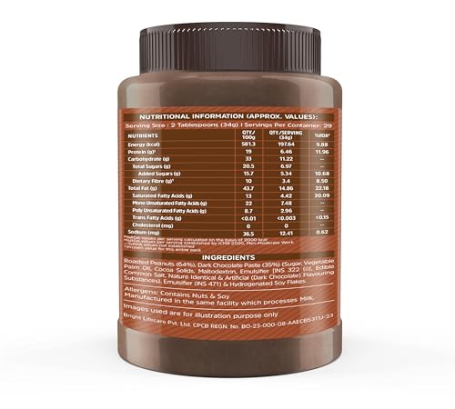 • FIBRE-RICH & TRANS-FAT-FREE SPREAD: This MuscleBlaze Fit Peanut Butter Chocolate flavour contains 10 g dietary fibre per 100 g that supports normal bowel movements and weight management