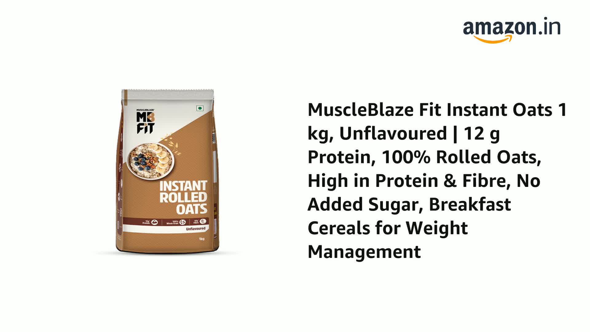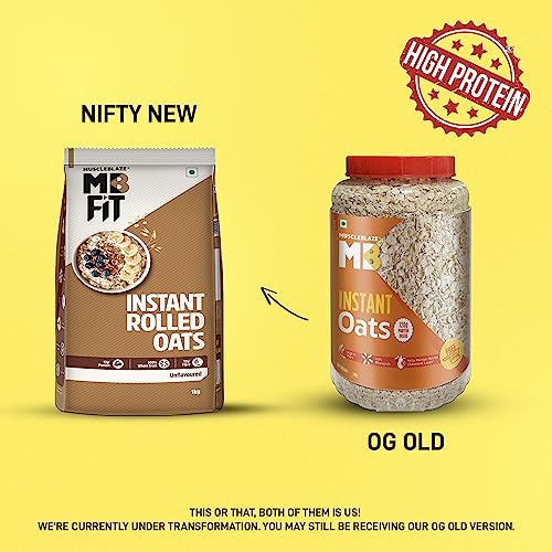MuscleBlaze Fit Instant Oats (Unflavoured, 1kg) | 12g Protein | 100% Rolled Oats, Breakfast Cereals for Weight Management