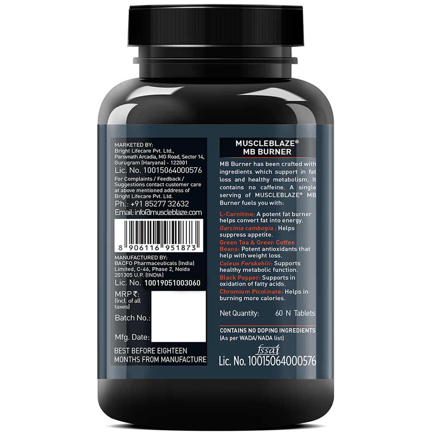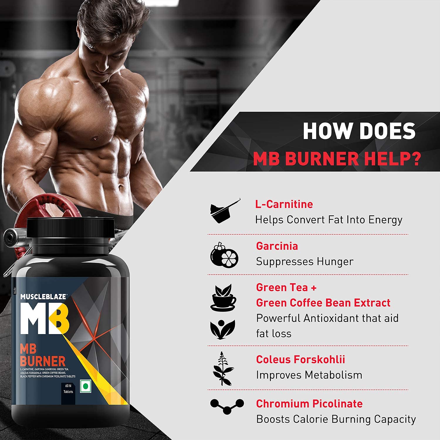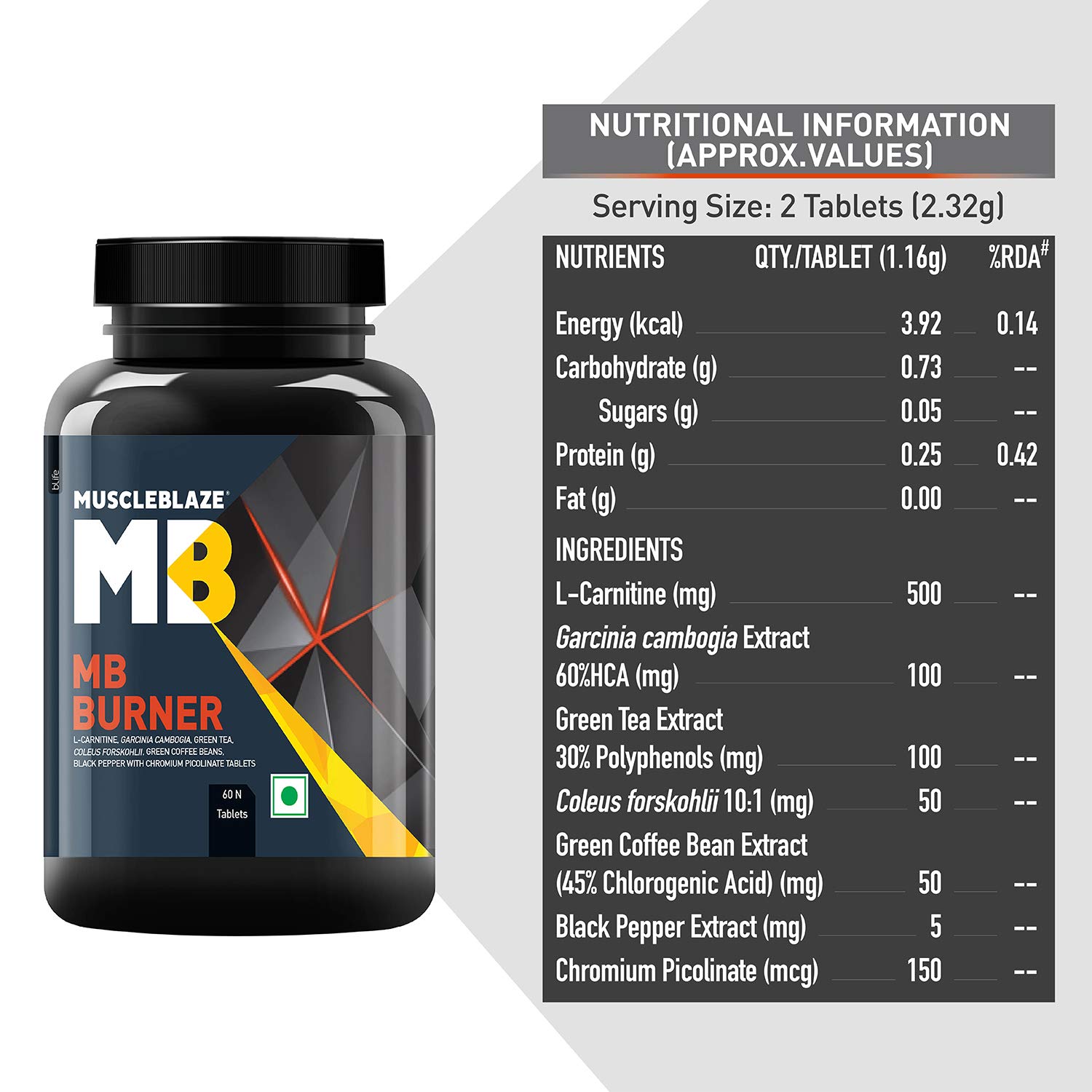 MuscleBlaze MB Burner L- Carnitine Garcinia Cambogia Green Tea Coleus Forskohlii Green Coffee Beans Black Pepper with Chromium Picolinate Tablets 60 Count