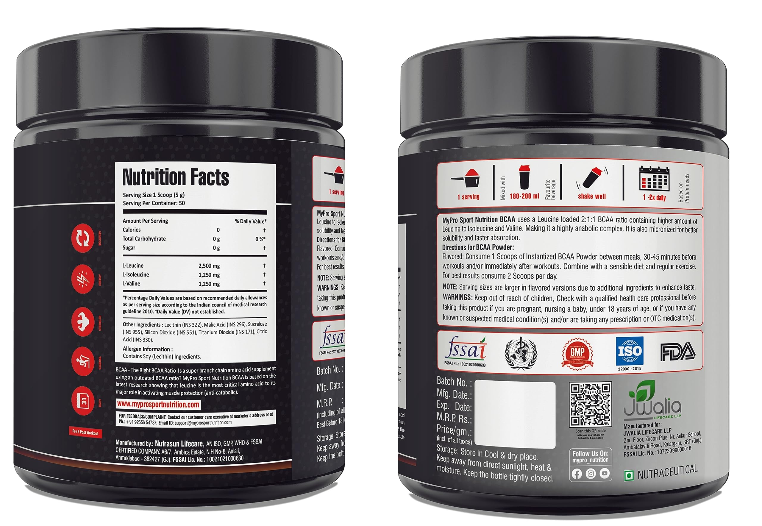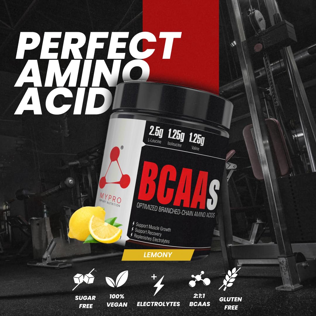 Mypro Sport Nutrition Premium BCAAs with 5G of Pure Proven 2:1:1 Ratio Muscle Recovery-Muscle Protein Synthesis-Lean Muscle-Improved Performance-Hydration-50 Servings-250 Gm (Lemony)