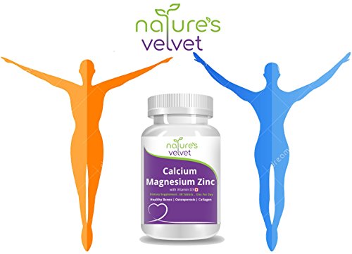 Nature's velvet calcium magnesium zinc are three of the most important minerals the body needs to gain and maintain good health. Calcium and magnesium help maintain healthy bones while zinc is essential for cell division and growth as well as body's immune system. Calcium citrate is more absorbable calcium supplement. Prevents degeneration of bones also helps in prevention of osteoporosis boosts collagen production also has folic acid useful for cell growth and metabolism.