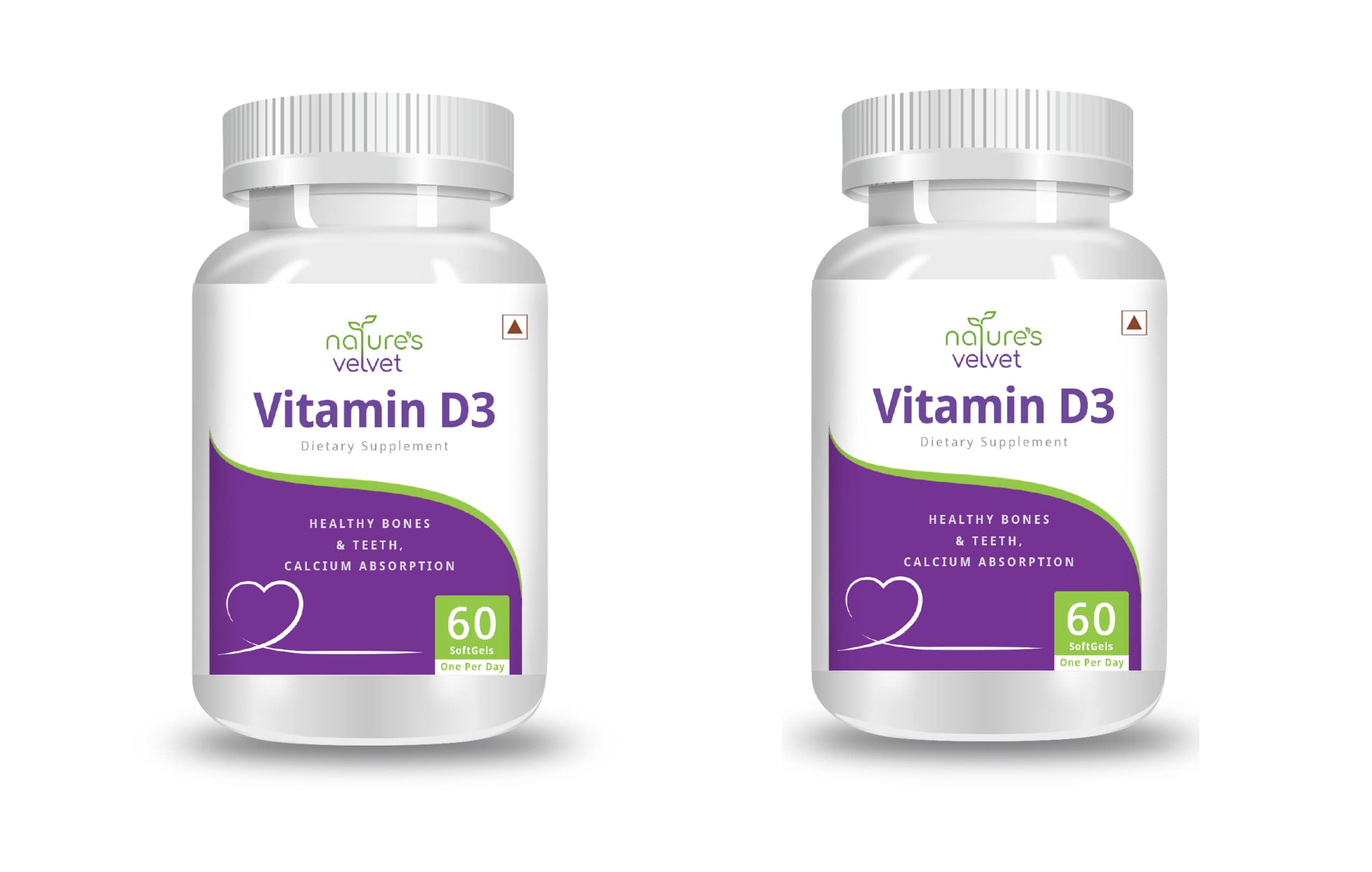 nature's velvet Lifecare Vitamin D-3 for Bone and Teeth Health 60 Softgels (1+1)