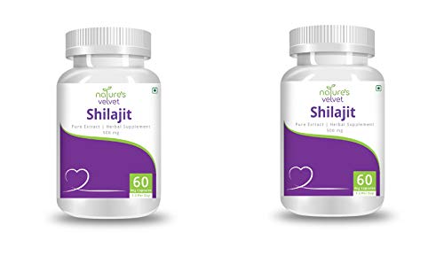 nature's velvet Shilajit Pure Extract for Youth and Stamina 500 mg 60 Veggie Capsules (1+1)