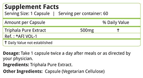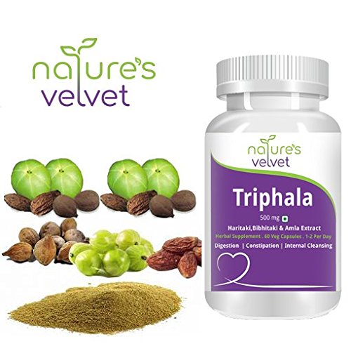 Nature's velvet triphala-a very popular ayurvedic herbal formula triphala(Terminalia chebula Terminalia bellirica and emblica officinal is) is an effective bowel cleanser. Triphala relieves constipation and regularizes the digestive system without disrupting the fluid-electrolyte balance in the body it is a laxative useful in constipation gas and regularizes intestinal movement it improves digestion it acts as a rasayan and is very good for blood circulation.
