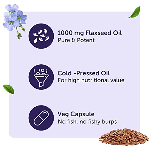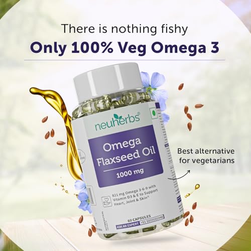 Neuherbs Veg Omega 3 1000mg- 60 Capsules| Cold Pressed Flaxseed Oil Capsule with Omega 3-6-9 For Men & Women | Total 821mg Omega3 with Vitamin D3 & E to Support Heart, Joint & Skin | Veg Capsule Shell Omega3