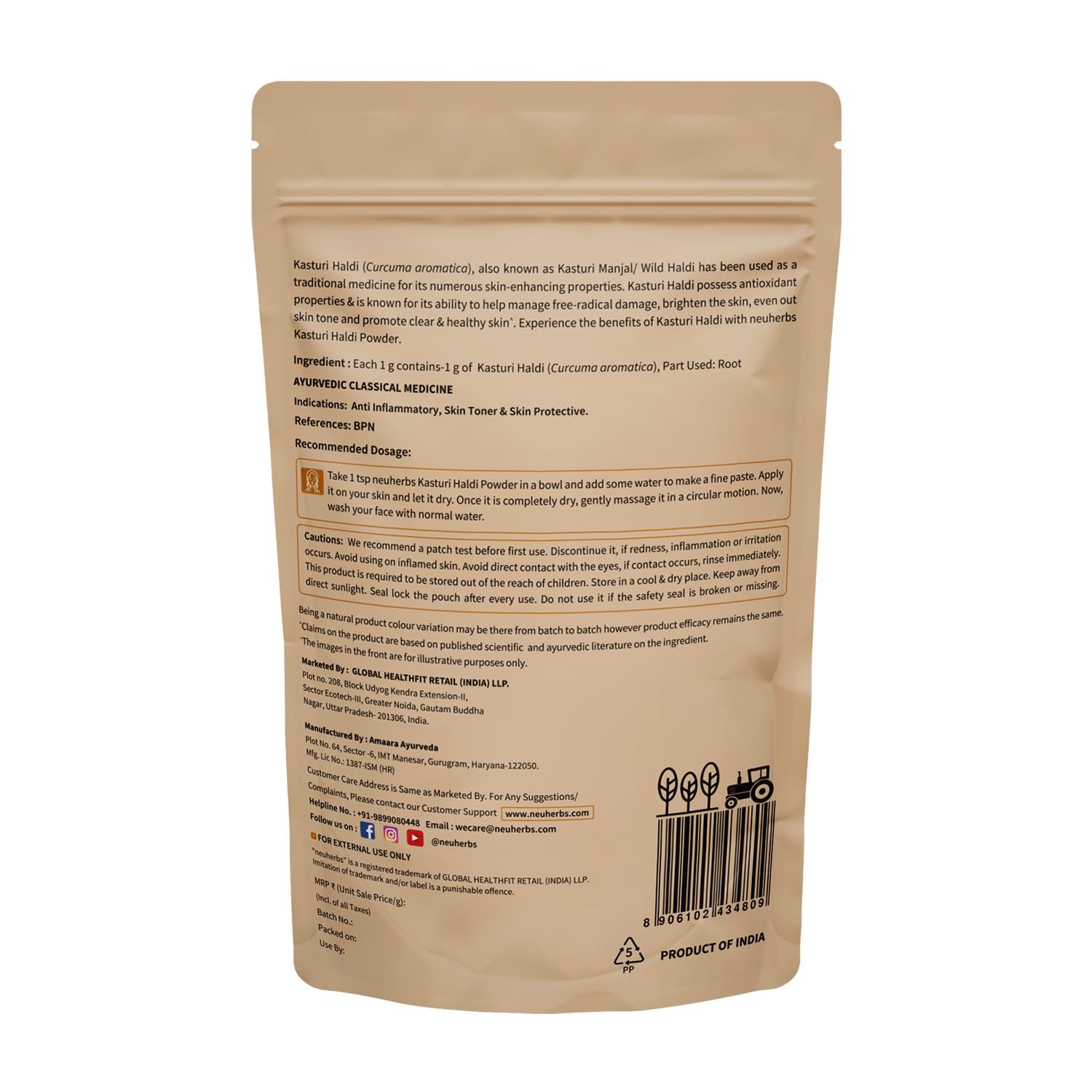 • Paraben and Cruelty-Free: neuherbs Kasturi Haldi Powder is a vegetarian product that is also cruelty-free: it is not tested on animals & is paraben -free/ Providing you the natural haldi powder.