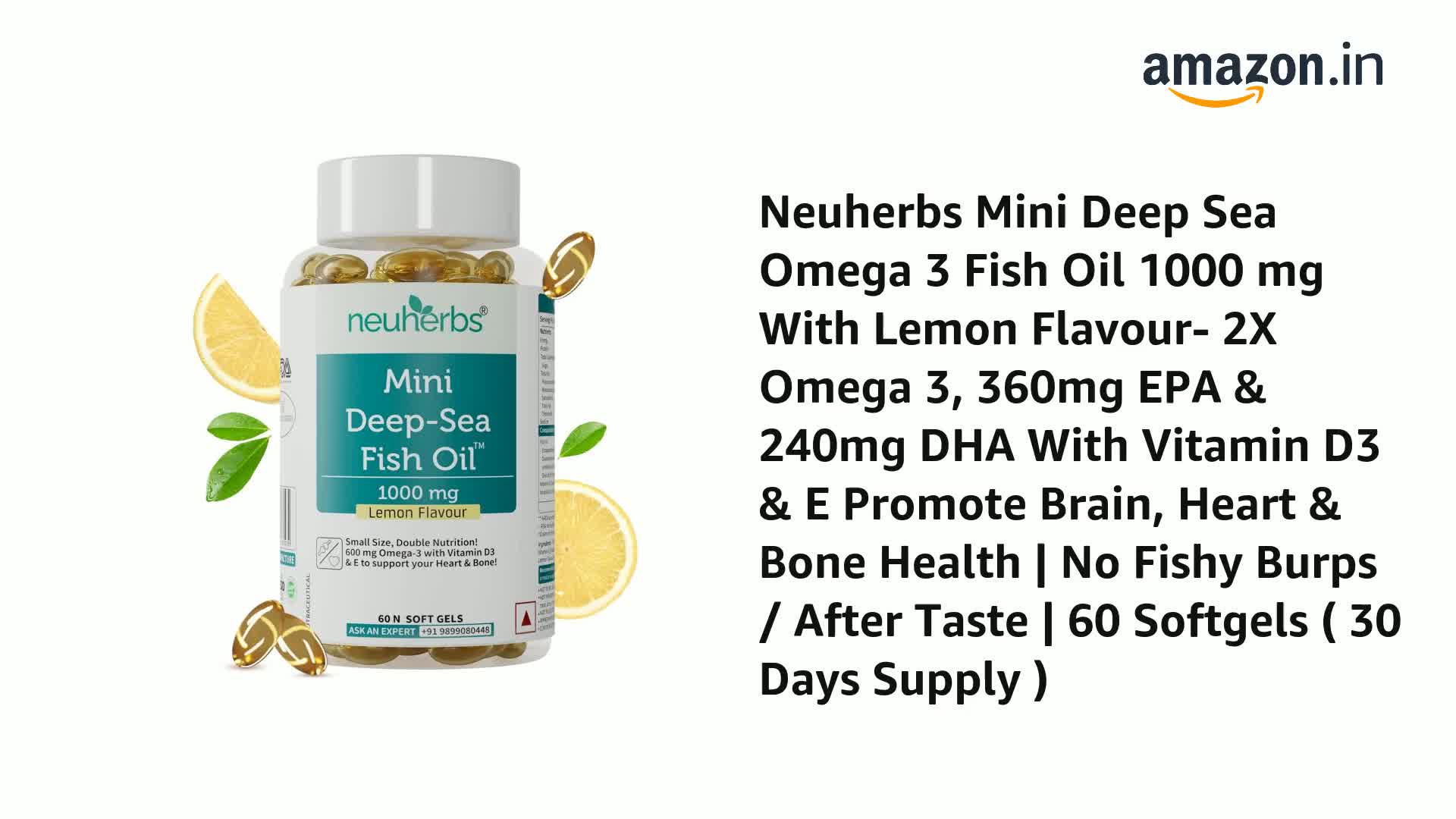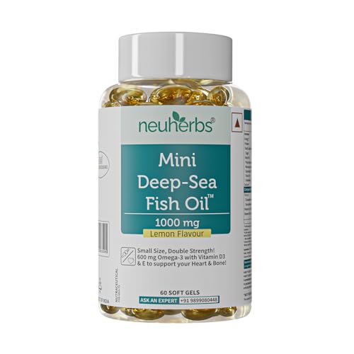 Neuherbs Mini Deep Sea Fish Oil Omega 3 Capsule 1000Mg- 60 Softgels for Men & Women |2X Omega 3 with 360Mg Epa & 240Mg Dha | Fish Oil Capsules with Vitamin D3 & E -Lemon Flavour, 71 grams