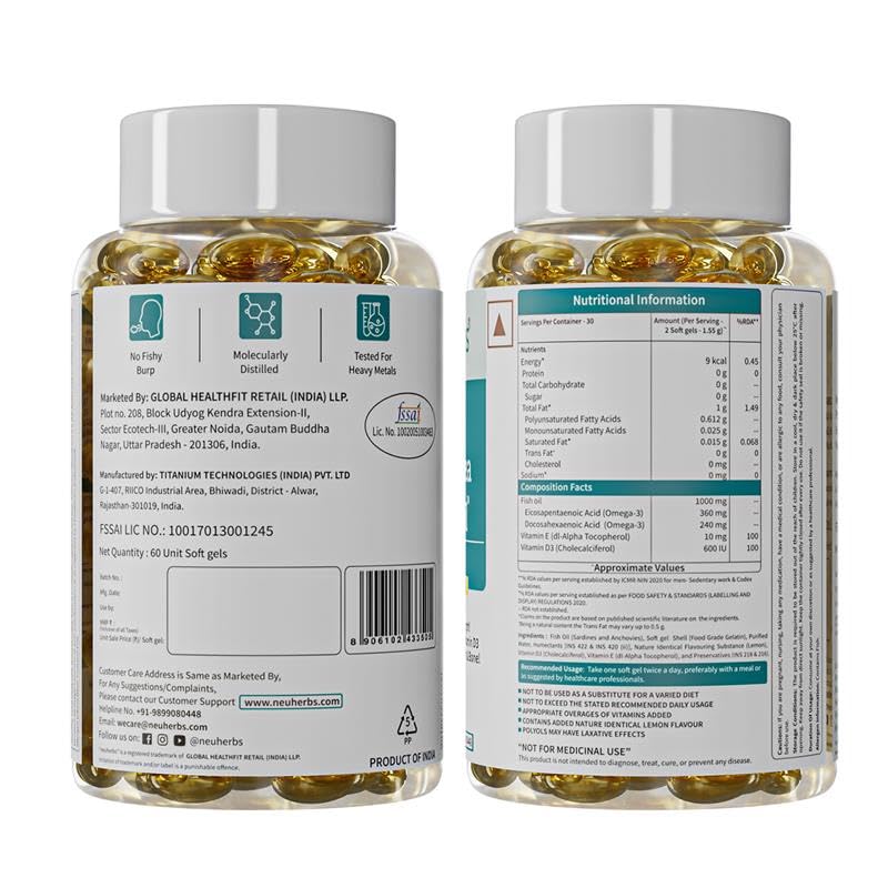 • No Fishy Burps: Enjoy the benefits without the discomfort of fishy burps. neuherbs Deep Sea Fish Oil is lemon flavoured ensuring a pleasant and effortless supplement experience.