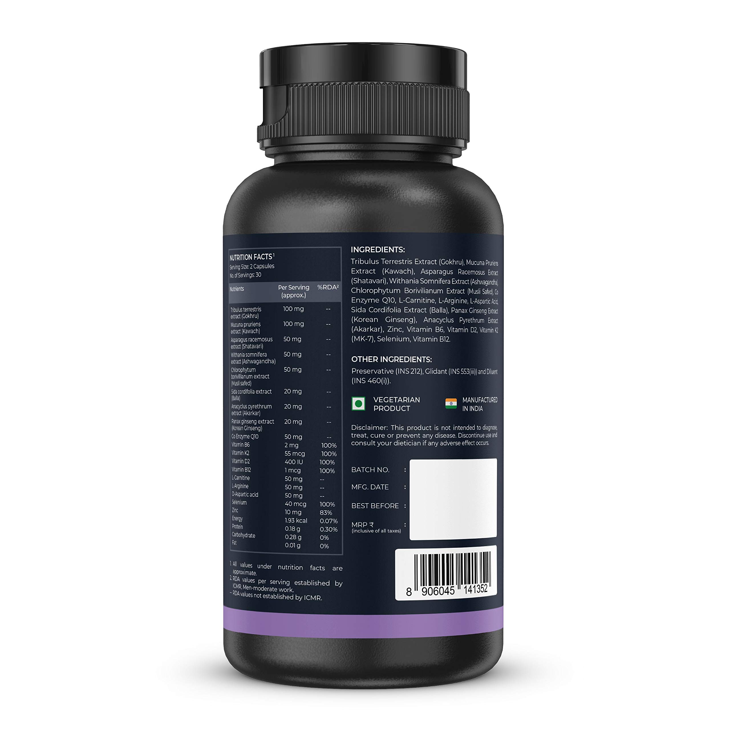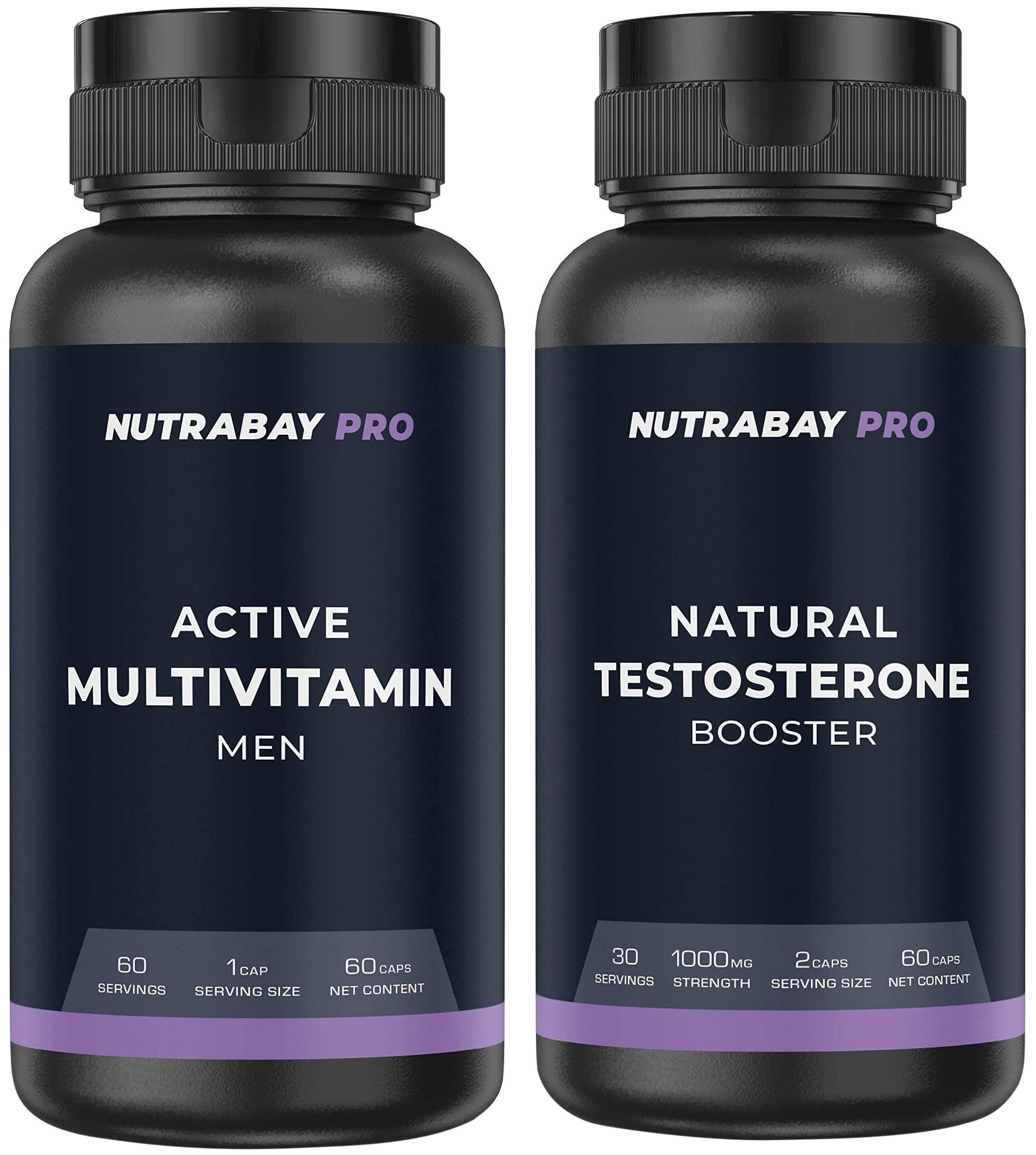 Nutrabay Pro Natural Testosterone Booster - Natural Testosterone Support for Energy Performance Stamina & Muscle Growth - 1000mg 60 Veg CapsulesNutrabay pro testosterone booster contains an extensively researched formula designed to naturally increase testosterone levels. It contains specially selected nutrients which are most effective aphrodisiac herbs that helps in promoting strength power vigour and vitality. It is a muscle and strength enhancing supplement which will naturally increase your testosterone level by providing your body with the nutrients it needs to naturally produce more testosterone.Nutrabay Pro Active Multivitamin Men - 25 Vitamins & Minerals Multivitamin For Men with Zinc Vitamin C Vitamin D and Multiminerals Enhances Energy Stamina Immunity & Overall Wellness - 60 Veg CapsulesNutrabay Pro Multivitamin for men is an advanced formula which contains 25 essential vitamins and minerals to support you with your goals. Each capsule includes nutrients that boost your everyday wellbeing while you stay active and keep up with a busy lifestyle. This Multivitamin has been specially tailored to make it the perfect supplement for active men.