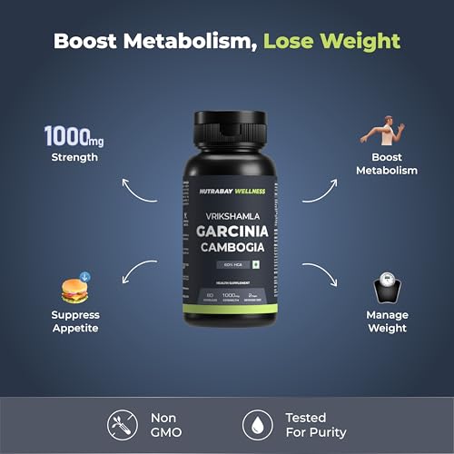 Nutrabay Wellness Garcinia Cambogia helps to reduce your appetite block fat production and reduce belly fat. It also blocks the production of new fats in your body boosts your digestive system. It is the ideal fat burner supplement for men and women. It works on all types of fat stored on your body like belly fat arms fat thigh fat and is useful for decreasing weight. It burns calories boosts energy enhances energy and promotes healthy metabolism. A healthy metabolism is a key to losing out. So you can burn more calories and lose more weight. It can be consumed by anyone daily for the best result. Non-GMO Gluten-Free Does NOT Contain Soy Dairy Yeast Eggs Corn Nuts Caffeine Additives Preservatives or Coloring. Consume 2 capsules daily 30 minutes before meal or as suggested by healthcare professionsal / dietician. This product can be consumed by Adults Elderly Men & Women.
