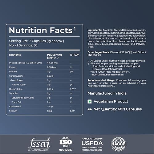 • Our Pre & Probiotics capsules are GMO-free 100% Vegan Made from Natural Ingredients Soy Free Dairy Free Sugar Free and Made in India to ensure the highest standards of safety and quality