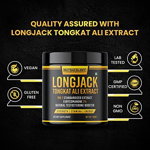 Tongkat ali (Eurycoma longifolia) o known as longjack or Malaysian ginseng is a flowering plant in the Simaroubaceae family that is native to Southeast asia. Our Tongkat ali powder is made with Tongkat ali roots that are wild harvested from remote forests in Malaysia. This Tongkat Ali supplement is made using only mature highly potent roots that reach a minimum of 15 years of age before harvesting. It's a 100% pure single ingredient Tongkat ali extract and contains no fillers or itives of any kind. Tongkat ali extract contains Eurycomanone a chemical linked to several of tongkat ali benefits. Eurycomanone standardisation ensures tongkat ali potency. Tongkat has long been used as a natural energy er. Tongkat Ali may help energy stamina and overall support for muscle mass and athletic performance. Our proprietary blend is enhanced with 500mg of Tongkat Ali root extract powder per serving to support athletic performance & system health and help energy levels in men and women. Tongkat Ali contains antioxidant properties derived from flavonoids. Tongkat Ali is an adaptogen to help your body adapt to . Nutracology offers high quality Supplement products that are made in and packaged under Good Manufacturing Practice standards. All ingredients sourced are tested and established as trusted suppliers prior to manufacture. All of these procedures are in place to ensure the best value at the highest quality. Benefits: It may support overall energy & athletic performance. Support exercise endurance & Muscle mass Testosterone Levels Improve Recovery Increased strength muscle recovery Increase lean Muscle mass Ingredients: Tongkat Ali Extract (Eurycoma longifolia) Root Extract Standardised to 2% Eurycomanone 500mg