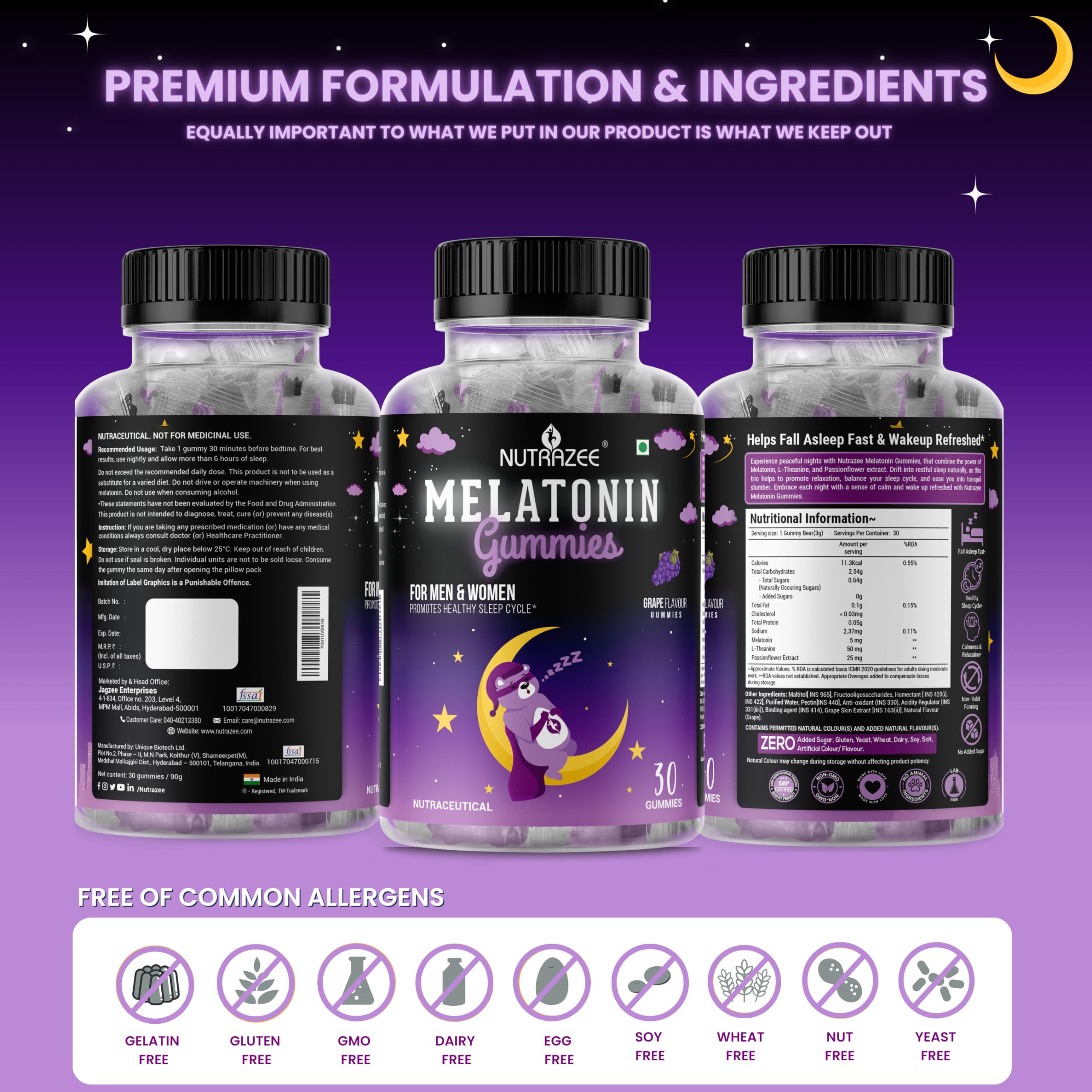 Promotes Calmness & Relaxation*: Nutrazee Melatonin Sleep Gummies combine the power of Melatonin L-Theanine and Passionflower extract. This trio helps to promote relaxation balance your sleep cycle and calm you into a tranquil sleep.