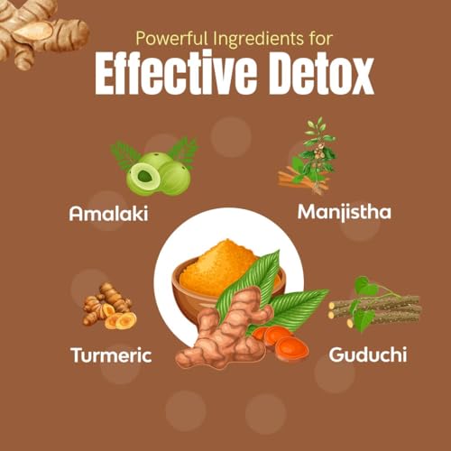 • Manjistha extract may cleanse the blood and liver and may help in skin-related issues. Turmeric or Haldi has been known for its antioxidant and anti-inflammatory properties. Detox 60 Capsules 800mg may help in the process of healing and may help to enhanc