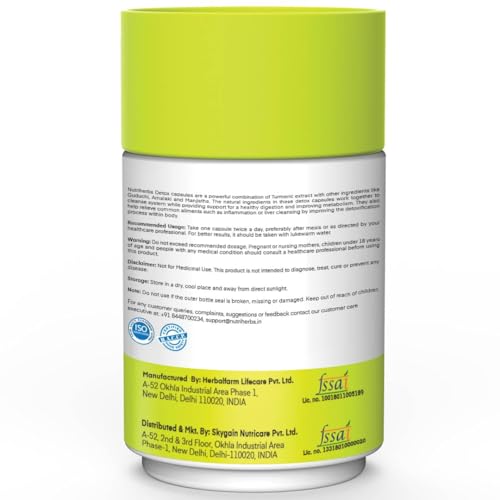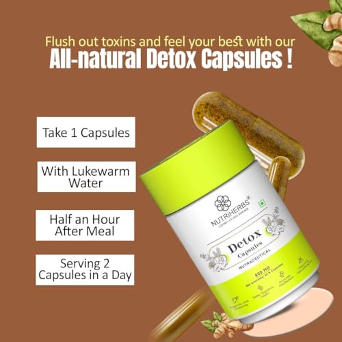 • Nutriherbs Detox supplement 60 capsules have been prepared by combining the goodness of traditional plants of Amalaki or Amla Extract Turmeric or Haldi Extract( with a bioactive compound that is curcumin) Giloy or Guduchi Extract and Manjistha Extracts.