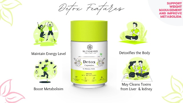 • Nutriherbs Detox Extract 60 Capsule is a blend of herbal ingredients that may help to cleanse or detox the body by eliminating the free radicals. Detox 60 capsules may help to support metabolism. Detox extract 60 capsule bottle may work as a metabolism bo