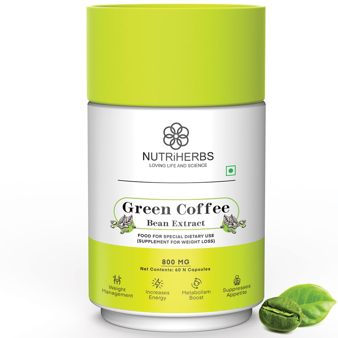 NUTRiHERBS Green Coffee Bean Extract Capsules - for Weight Management & Antioxidant Support - Chlorogenic Acid, Natural Metabolism Booster, Energy & Blood Sugar Support - For Men & Women (60 Capsules Pack of 1)