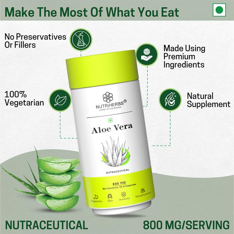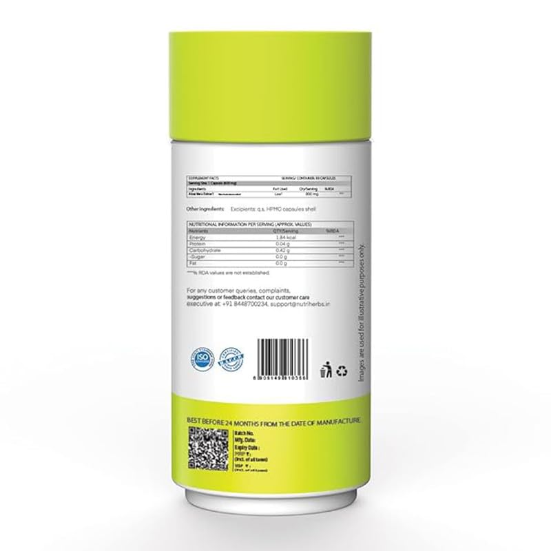 • Nutriherbs Aloe Vera extract capsules are made in India & free from harmful fillers. These capsules should be consumed twice daily with lukewarm water for best results. These healthy capsules are organic and highly effective & may contribute towards a bet