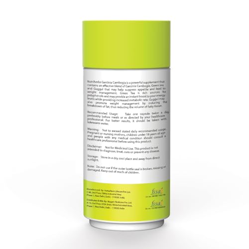 • Nutriherbs Garcinia Cambogia capsules contain Garcinia Cambogia Extract and Guggul Extract that may help in maintaining good cholesterol. It may lower high levels of fat in your blood and reduce oxidative stress in your body. Garcinia cambogia may have so