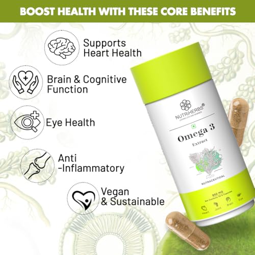 • Nutriherbs Omega 3 capsules are made in India & free from harmful fillers. These capsules should be consumed twice daily with lukewarm water for best results. These vegan capsules are organic and highly effective & may contribute towards a better lifestyl