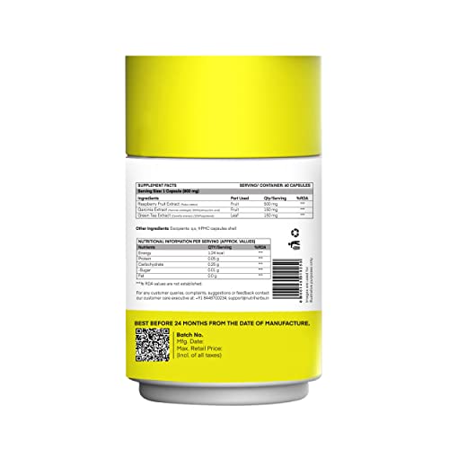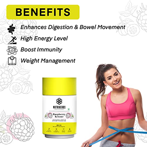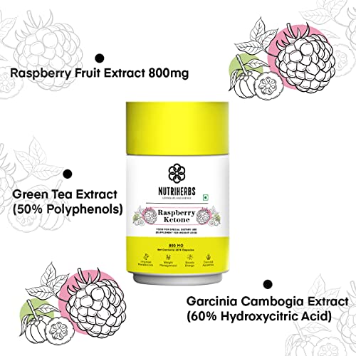 Nutriherbs Raspberry Ketone Capsules with Garcinia Cambogia, Green Tea Extract, for Healthy Digestion & Energy - 60 Capsule