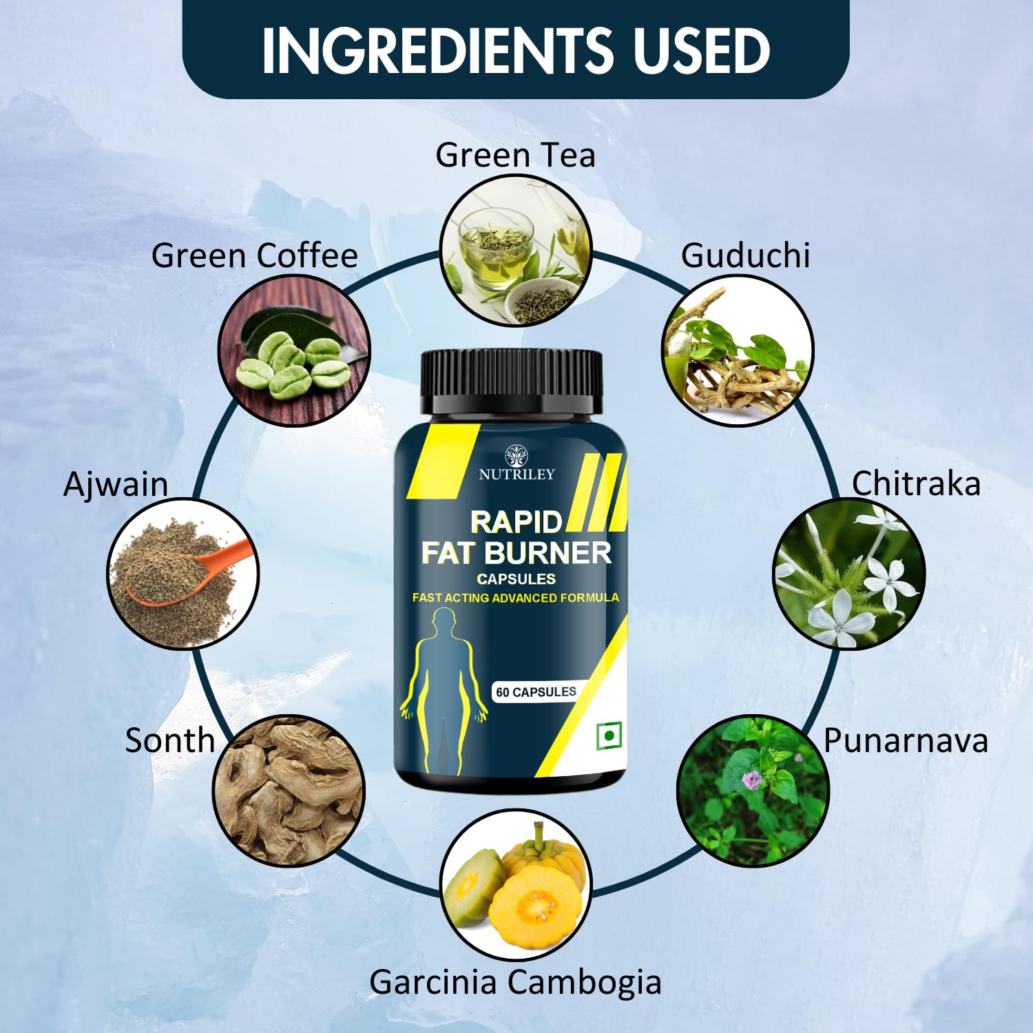 Nutriley Fat Burner Capsule Weight Loss Supplement With Garcinia Cambogia Green Tea | For Women & Men (60 Capsules)
