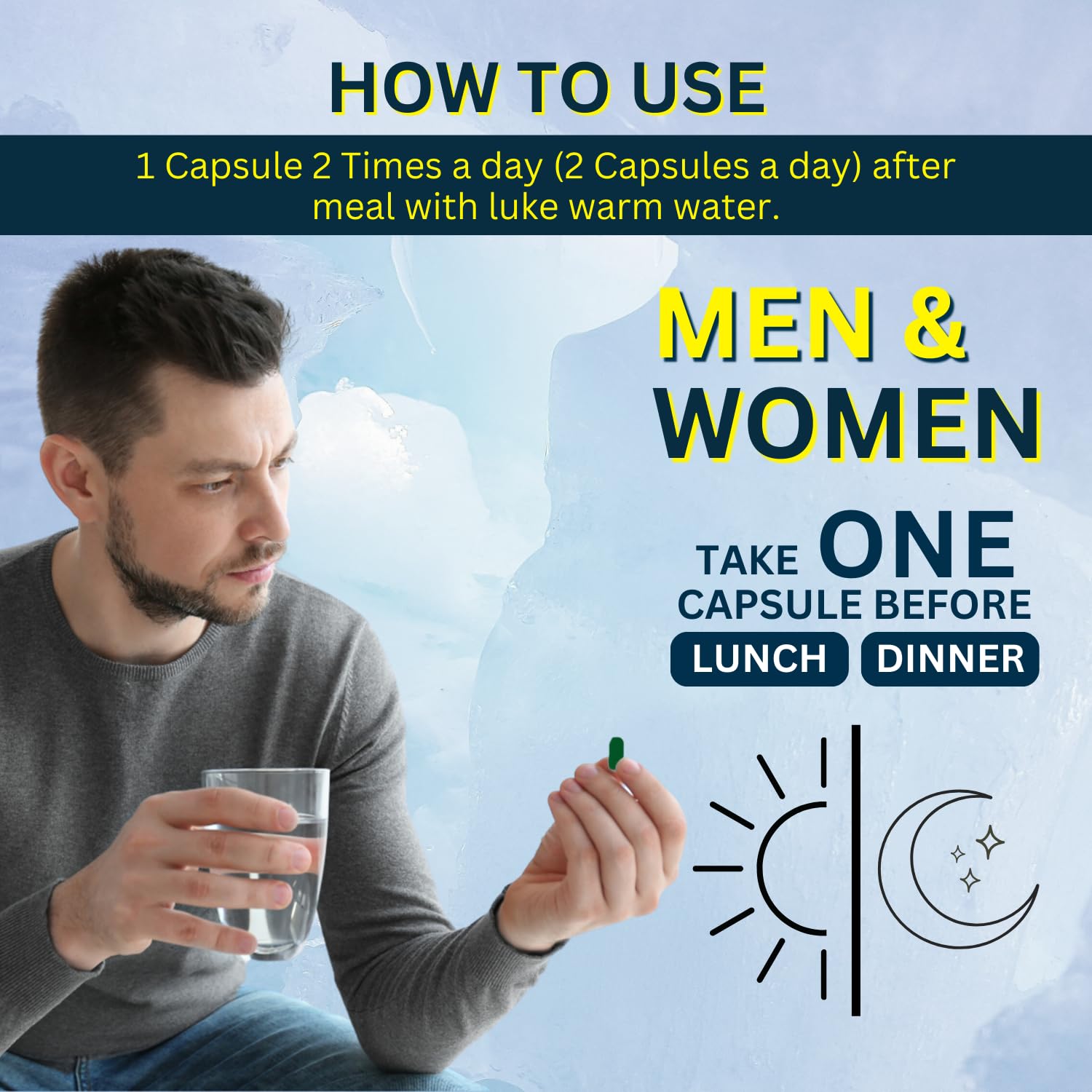 How to Use 1 Capsule 2 Times a day (2 Capsules a day) after meal with luke warm water.