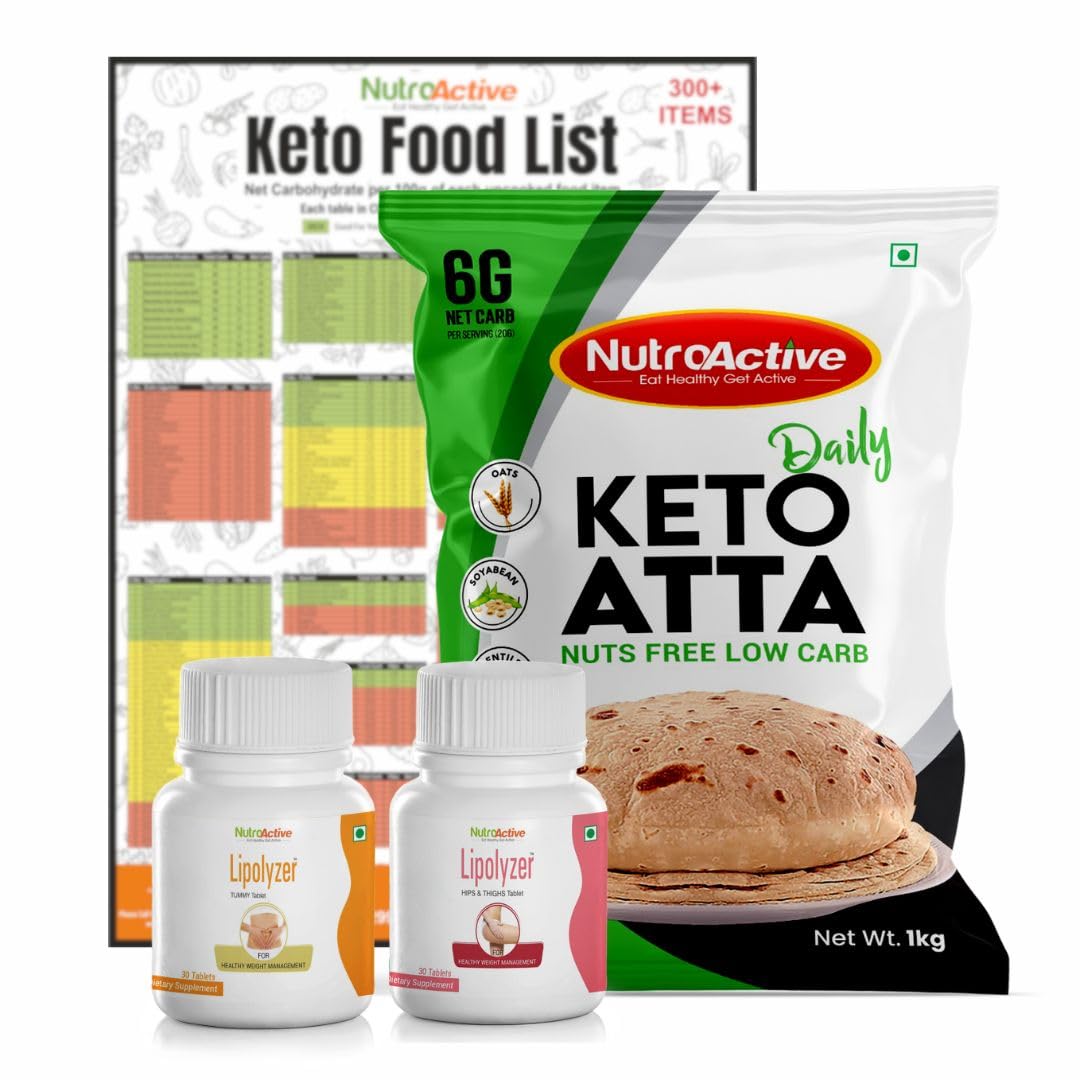 This Weight Loss Kit contains BrownXatta - 1 kg Lipolyzer Tummy Tablet 30 tab Lipolyzer Hips & Thighs Tablet 30 tab a Carbohydrate Counter Chart. Please call our certified Nutritionist at the contact no. given on the products to get a free customized weight loss diet plan.