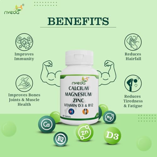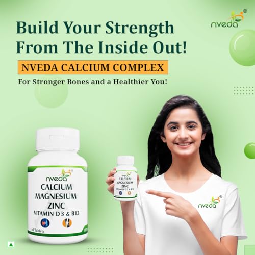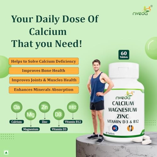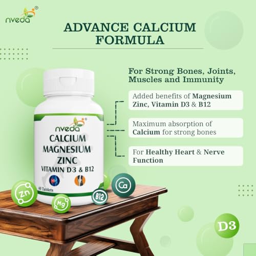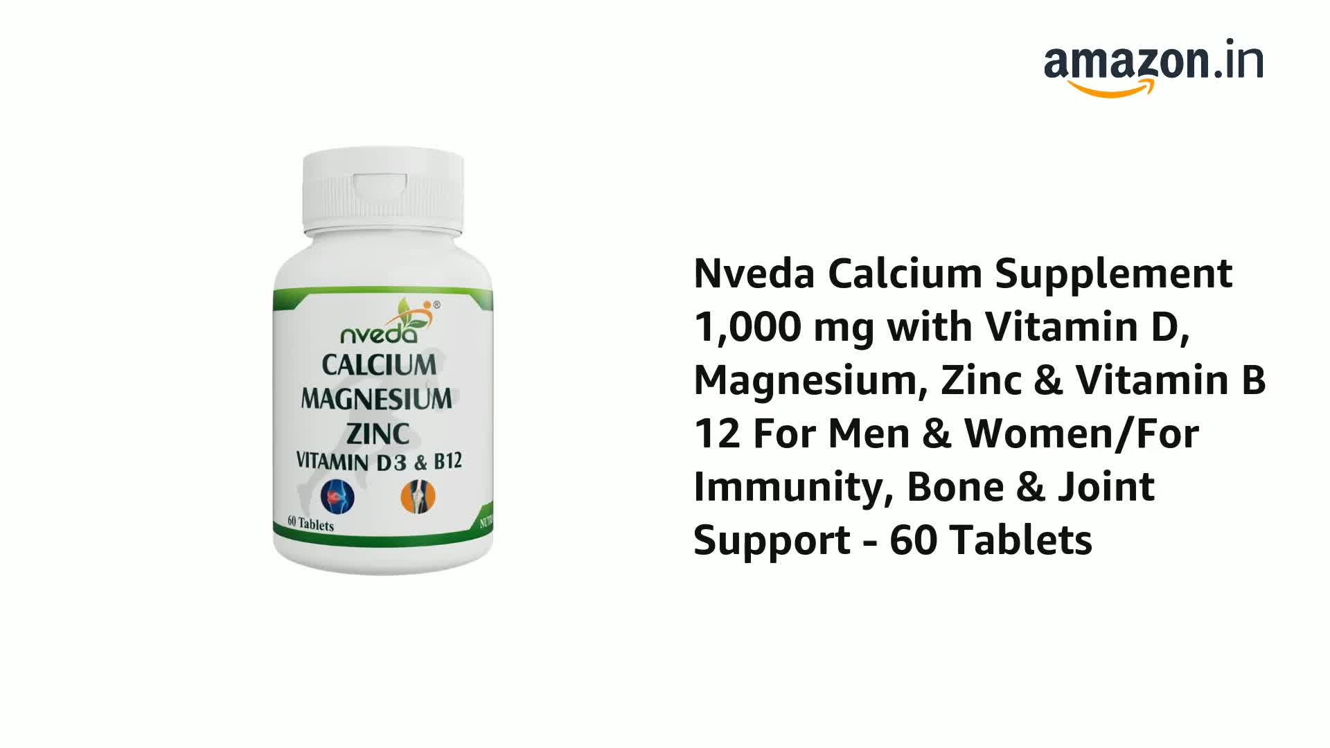 Nveda Calcium Supplement 1,000 mg with Vitamin D,Magnesium,Zinc & Vitamin B 12 For Unisex/For Immunity,Bone & Joint Support - 60 Tablets, 100 grams