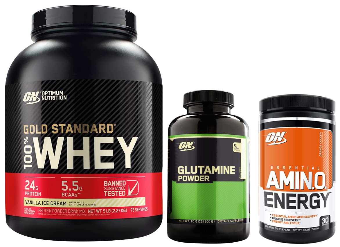 Optimum Nutrition Gold Standard 100% Whey Protein Powder & Recovery & L-Glutamine Powder & Muscle Recovery 5g Glutamine per serve 250 Gram 50 Serves & Essential Amino Energy